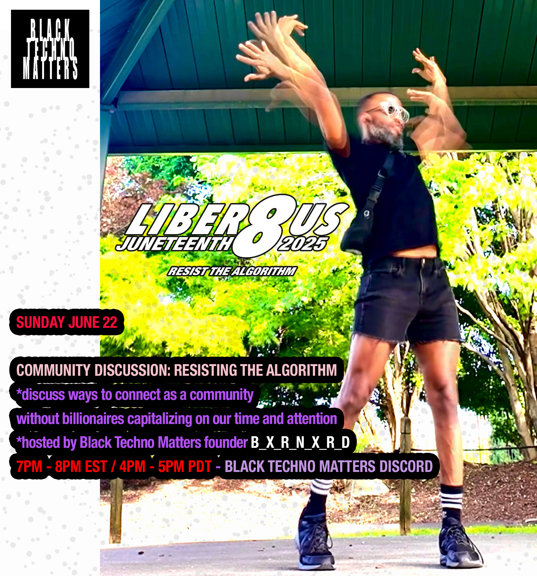 This Juneteenth, let’s celebrate RESISTANCE, freedom, community, and the BLACK roots of real dance music . Come gather, dance, talk, laugh, exchange ideas and most importantly resist the algorithm 💪🏾